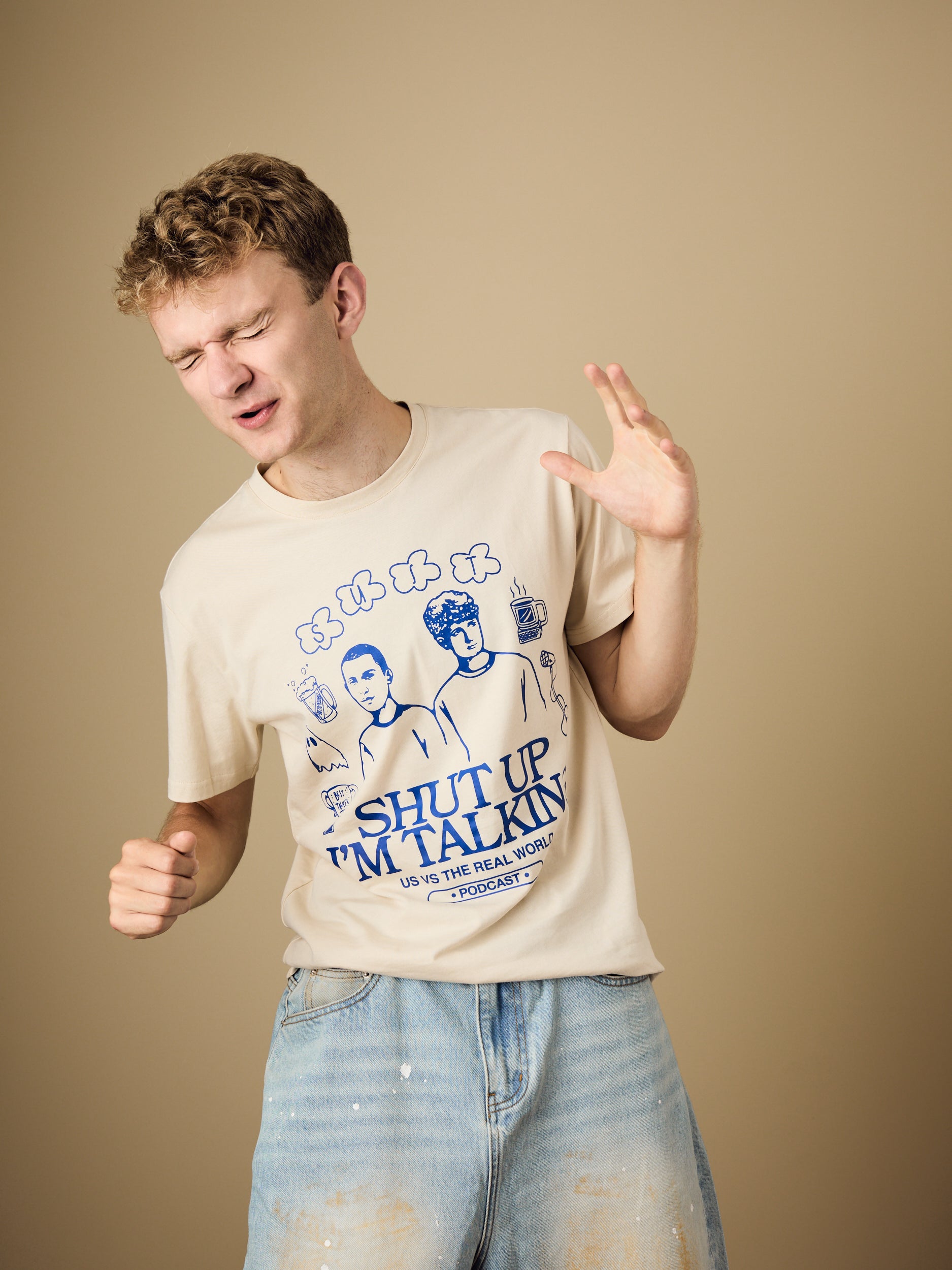 Two guys, too many thoughts, and a shirt that sums it all up. Features hand-drawn doodles of Jack & Tommy surrounded by the chaos of everyday life. Soft, comfy, and slightly existential.